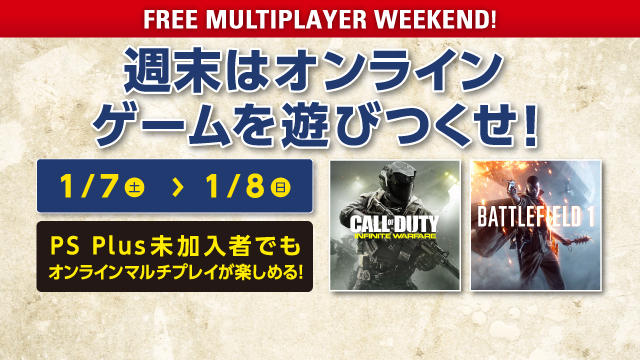PlayStationR4のオンラインマルチプレイを全ての対応タイトルで体験できる「FREE MULTIPLAYER WEEKEND」を、1月7日(土)から1月8日(日)の2日間限定で開催します。