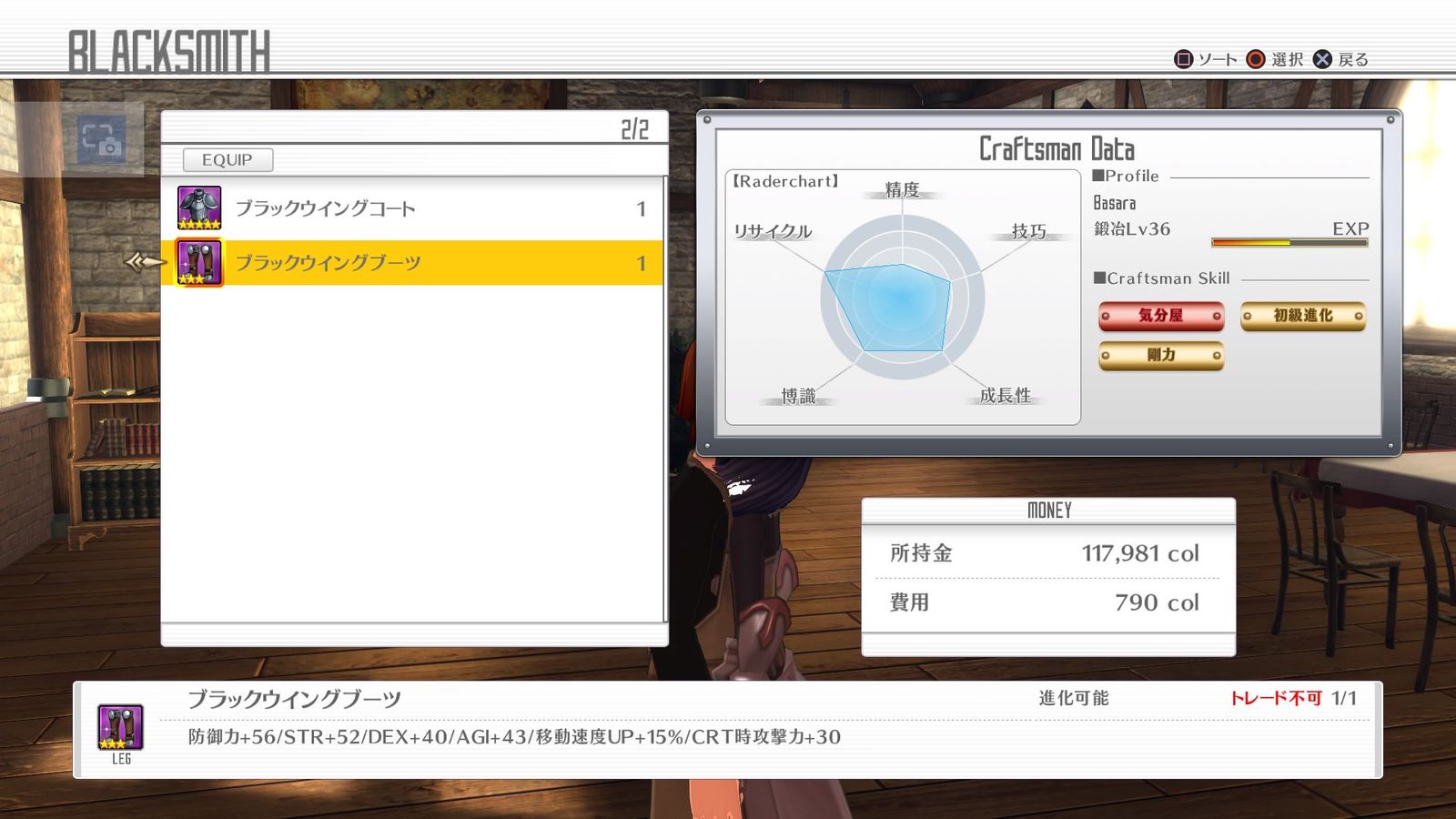 ブラックウィングコートは進化でcrt+15%、ソードスキルDMG+20%のどらちかが付与される。