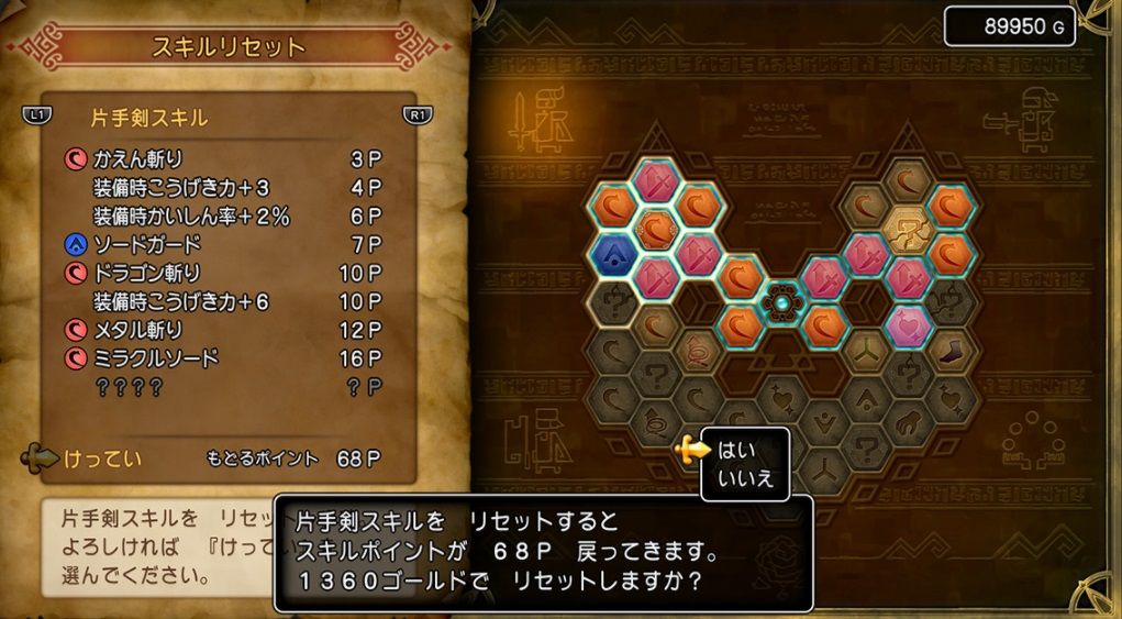 最後の仲間が加入するあたりで、スキルパネルのリセットができるようになります。レベルで言うと30過ぎくらいになります。