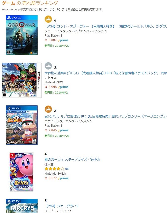 この前までファークライが3週間近くトップだったけど