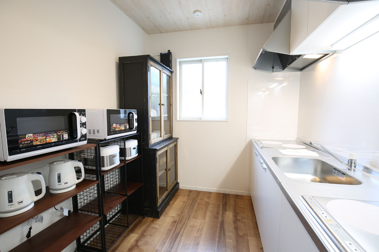 参考写真を見ると分かるが,キッチンには電子レンジや電気ケトルが複数台あったり,洗面所には洗面台や洗濯機,掃除機などが,
