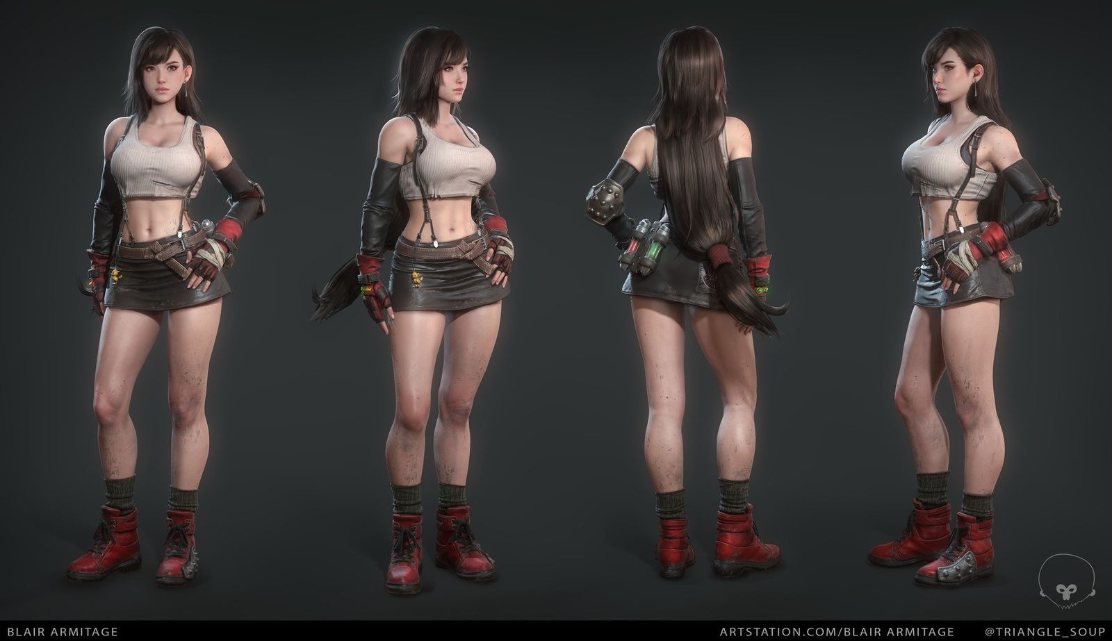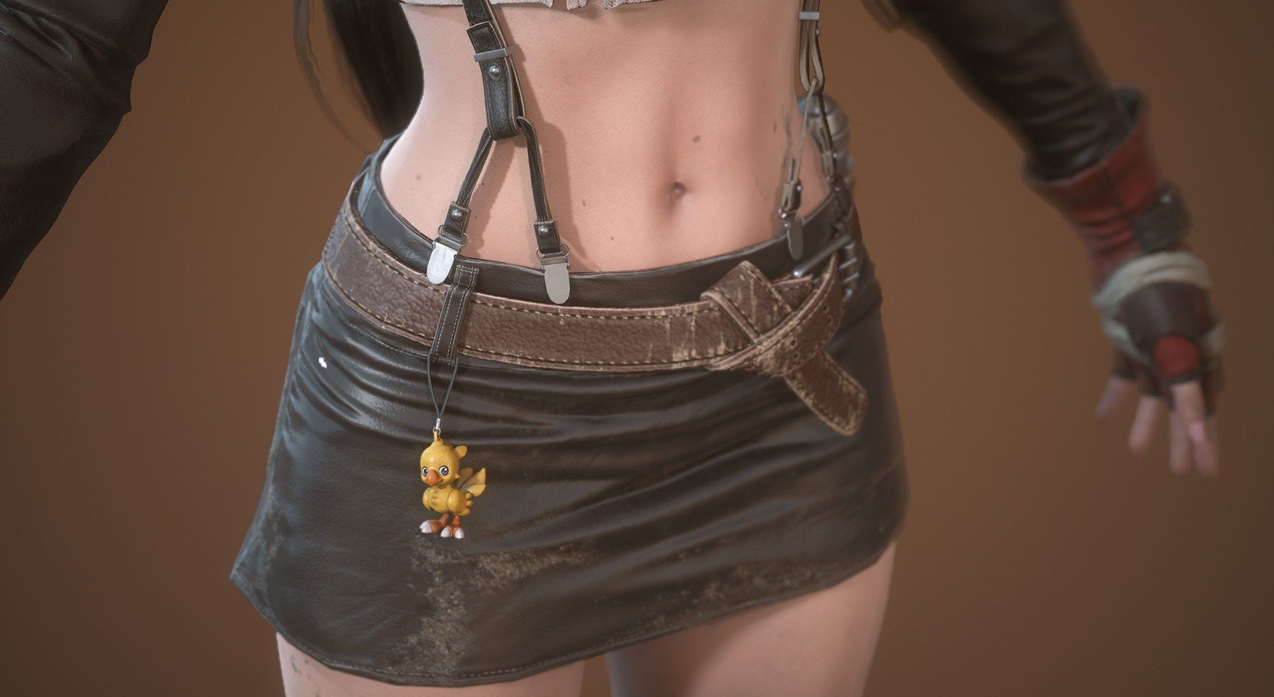 野村「ティファは腹筋を割りたかったのでアスリートスタイル。社内の倫理部署からの指示もあり激しいアクションで不自然にならないよう胸部を絞める必要があった。