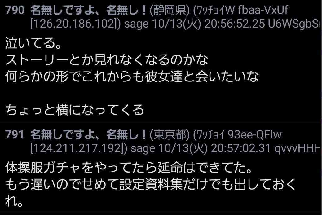 はじめて普通に現役でやり続けてるゲームのサ終を食らってしまった