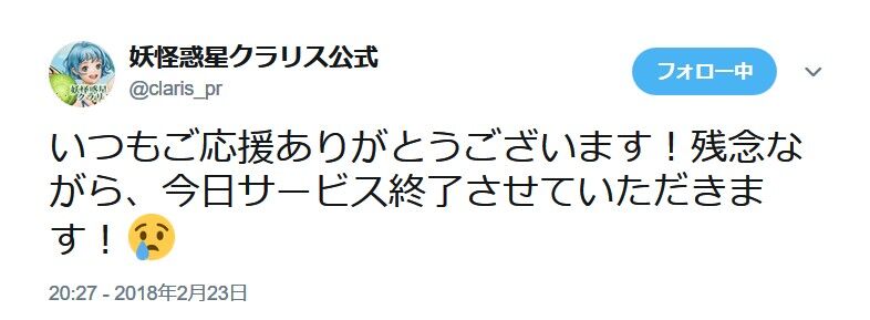 一年ちょいでサービス終わってるの多い感じだな。
